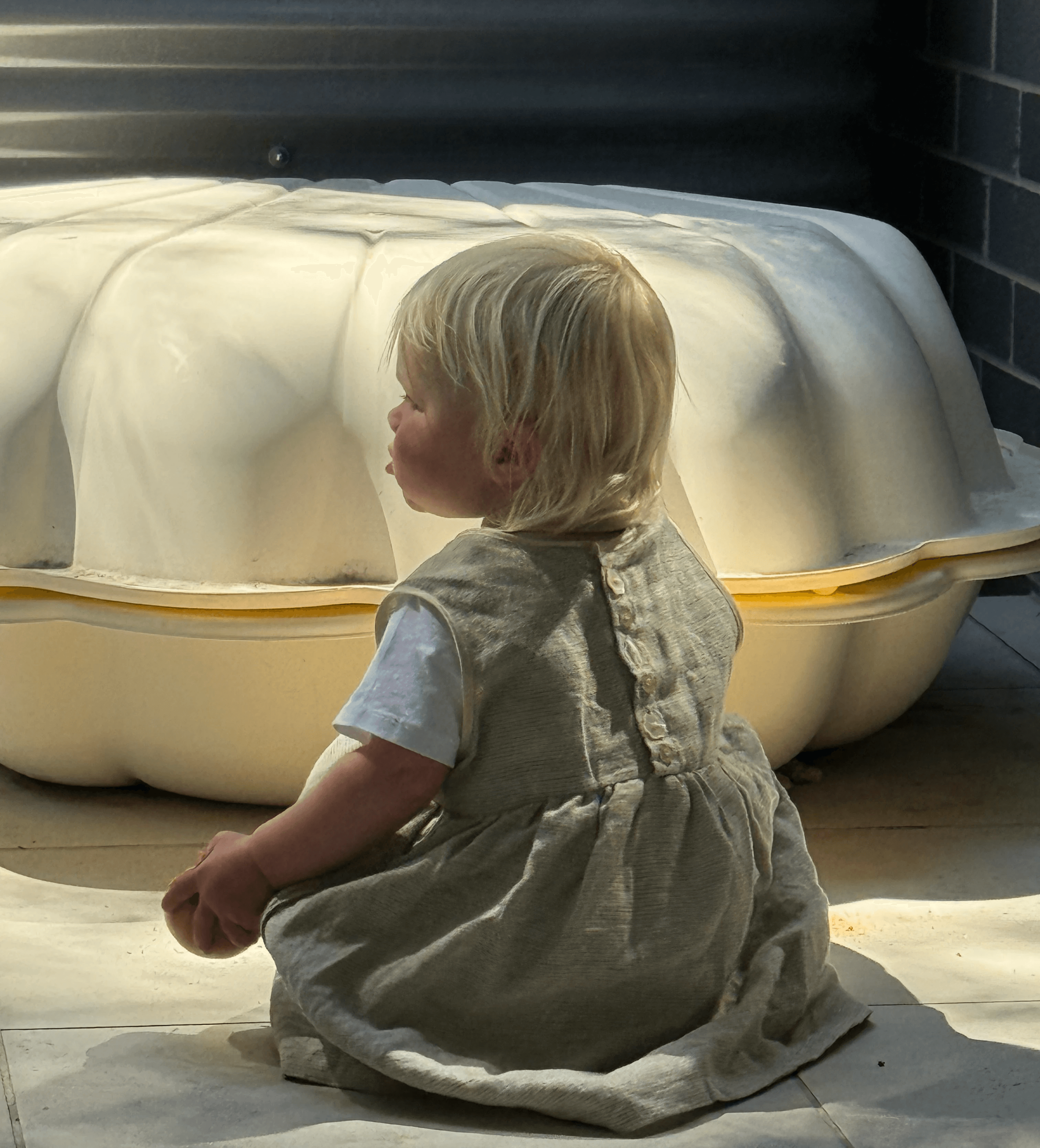 Although Eden is still to small to fit into her dress I really enjoyed working on a smaller scale with less fabric to deal with and manouver through a sewing machine. When it came to the binding however, the smaller scale proved a little more tricky… Worth every second of the process to see Eden wear the dress !