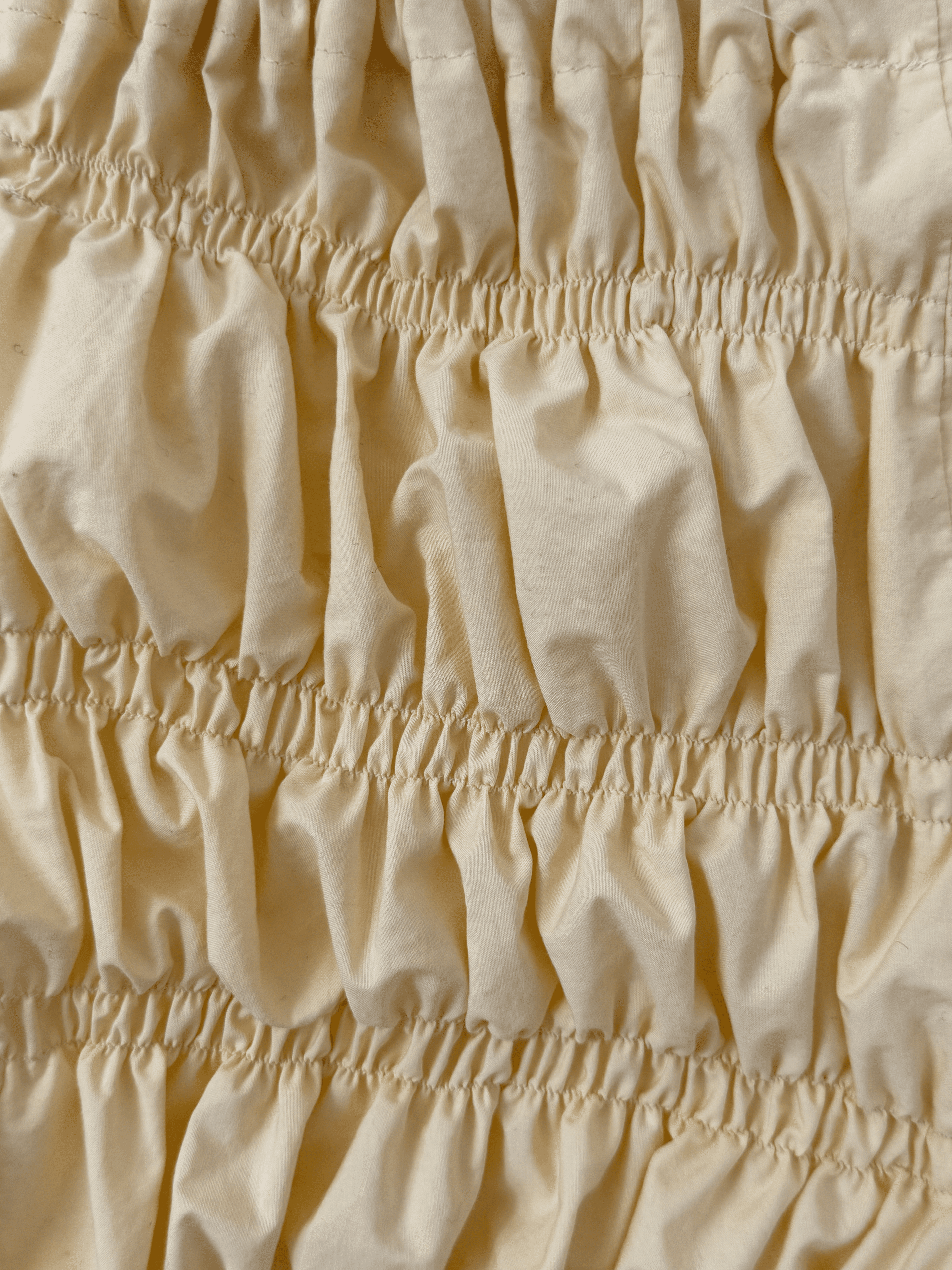Shirring, shirring, shirring - Set stitch length to the longest and up the thread tension, play around with this to get the result you are after ( try out on separate fabric first to get the settings right ). Rule of thumb is the longer the stitch length and higher the tension the tighter the gathers.
